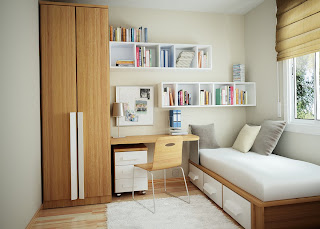 Add small drawers to store your personal belongings. By entering any personal items into the drawer so your room will look more presentable. Use a little trick that every piece of furniture in the room can be used as storage media, such as the area under the bed or under dressers pouf.