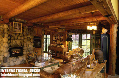 Would look very appropriate real burning fireplace or stove with firewood. This solution is ideal, a similar effect is also easy to create high-quality cast iron gas or electric stove. country style living room 2014